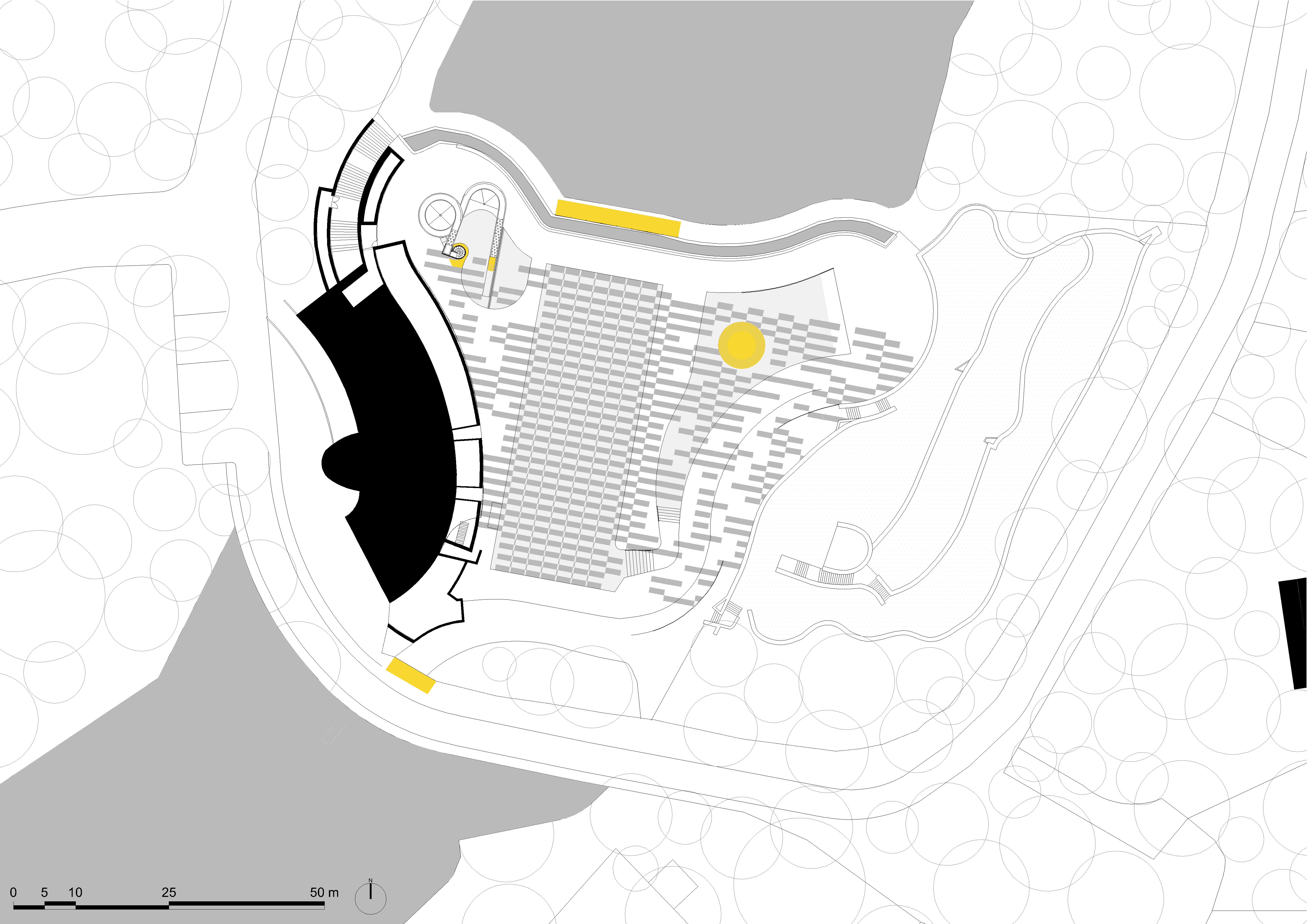 La proposition architecturale consiste à venir superposer une trame sur l’entièreté de la piscine existante. Cette trame est conçue comme un élément évolutif se transformant à la rencontre des éléments de la géométrie de la piscine de Jacques Depelsenaire. Le résultat est un grand tableau qui peut être observé d'en haut : depuis les rues du quartier avoisinant surplombant le site ou depuis les terrasses panoramiques composant l'image du bâtiment adjacent.