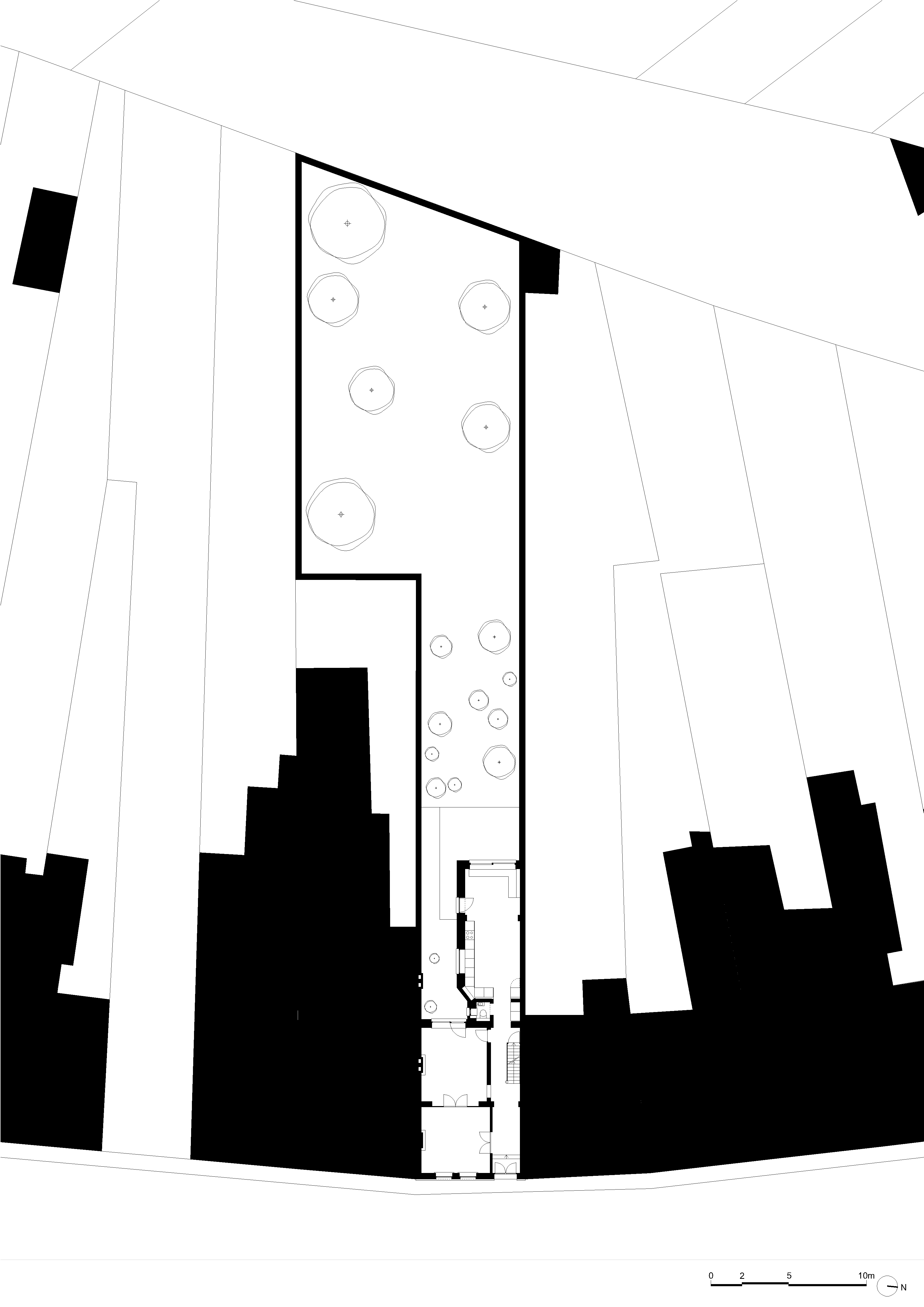 Au niveau extérieur, le jardin sera conservé et densifié avec des essences indigènes afin de favoriser la biodiversité déjà existante avec la présence d’un point humide, de deux cerisiers d’un noyer) renforçant le côté « sous-bois » de cet espace. La terrasse quant à elle, est conservée dans son état brut.