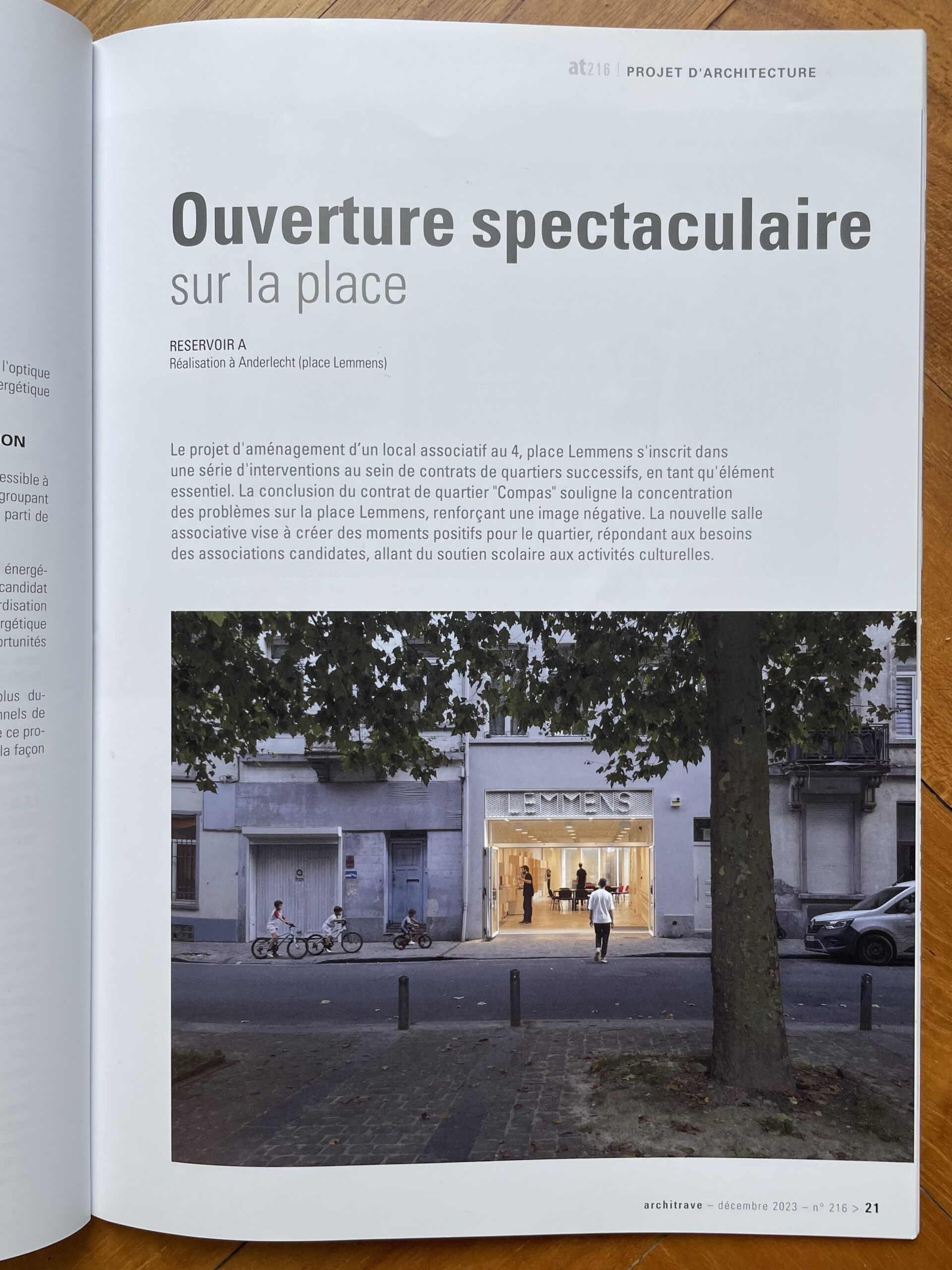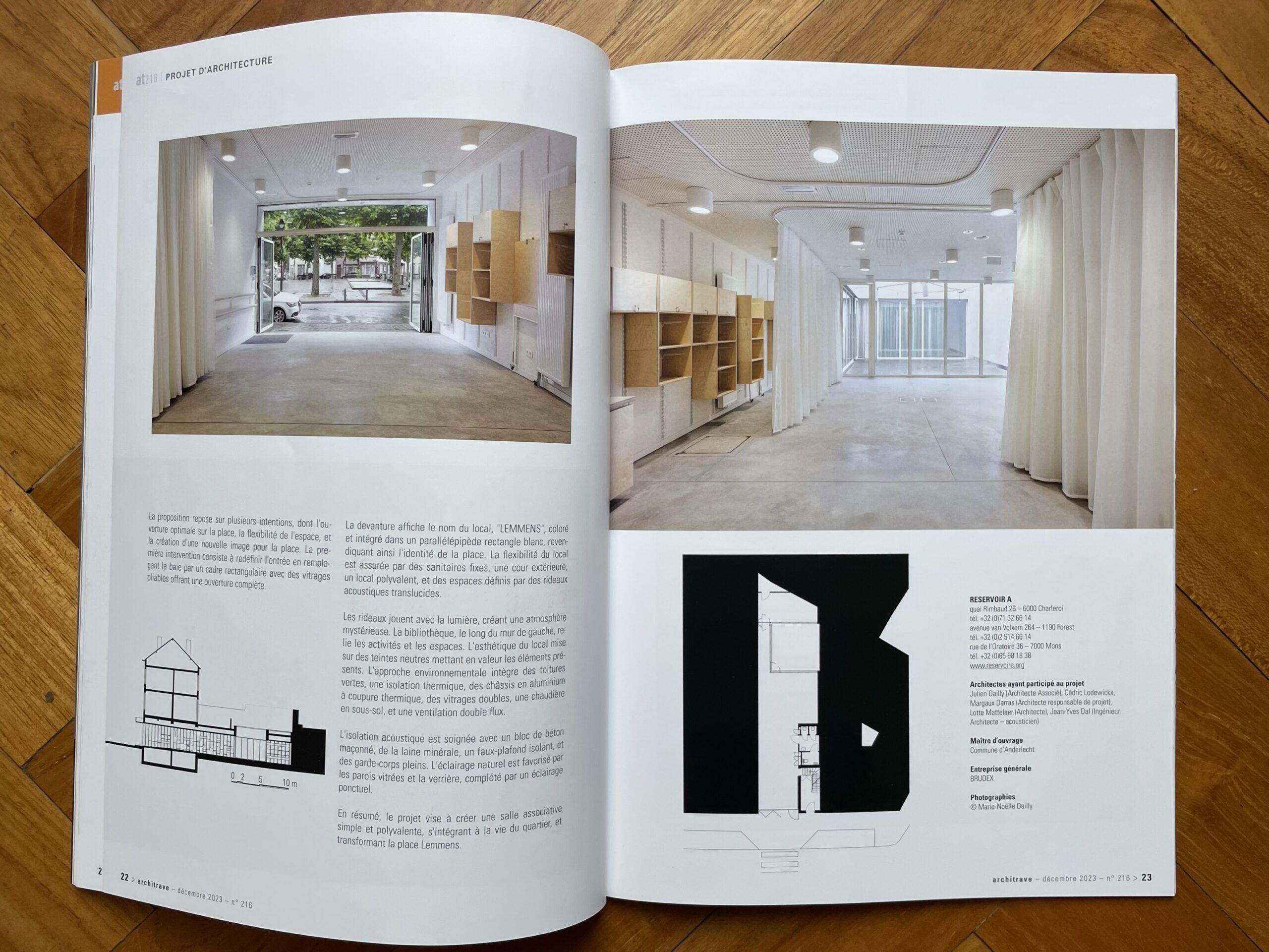 Publication du projet Local Associatif Anderlecht paru dans l’Architrave 216 – Décembre 2023