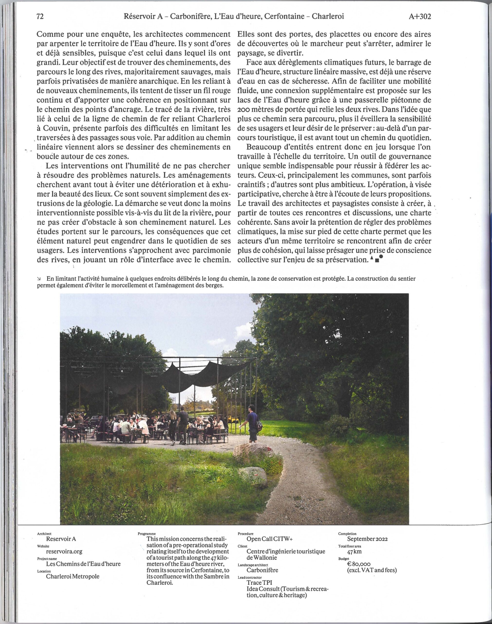 Publication du projet Chemins de l’Eau d’Heure paru dans l’ A+ 302 – juin-juillet 2023